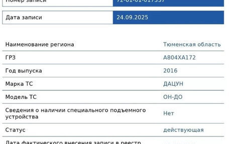 Продажа Datsun on-DO i рестайлинг седан 1.6 л. 87 л.с. с пробегом в Тюмени